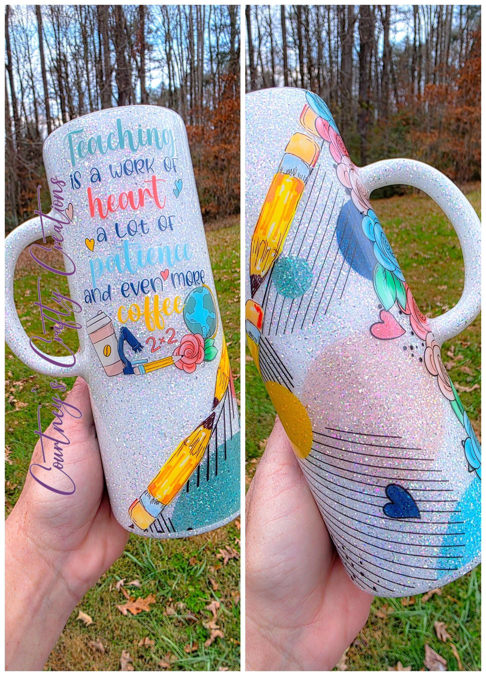 Keep your heart warm while teaching with our Teaching is a Work of Heart tumbler. It holds 24oz of your favorite beverage and is made with durable, double-walled stainless steel. The handle makes it easy to carry around, perfect for busy days in the classroom.